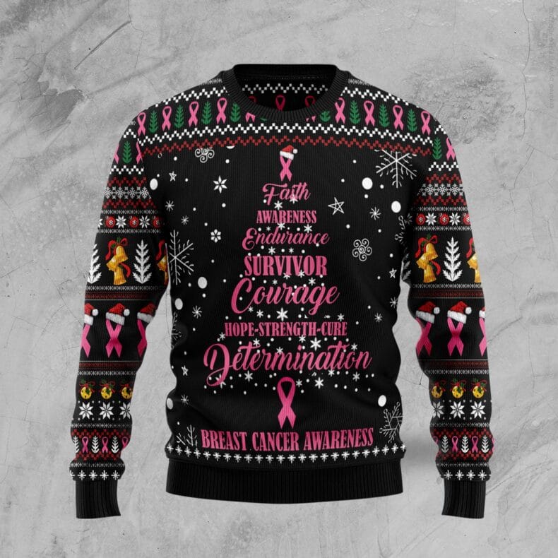 Breast Cancer Christmas Tree Ugly Christmas Sweater