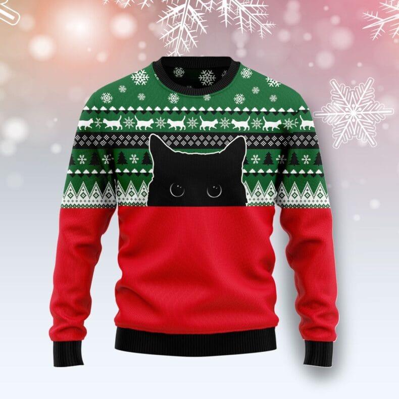 Meow Meow Black Cat Ugly Christmas Sweater
