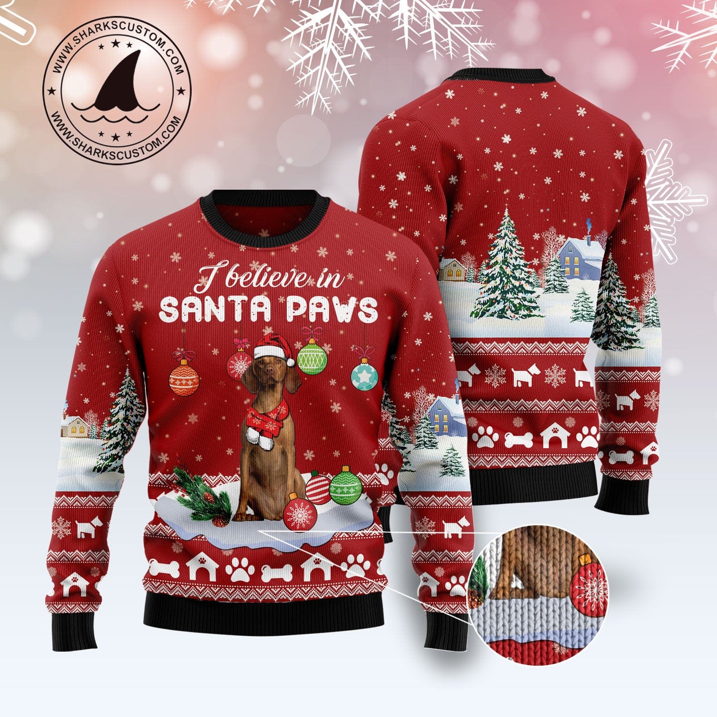 Vizsla I Believe In Santa Paws Ugly Christmas Sweater